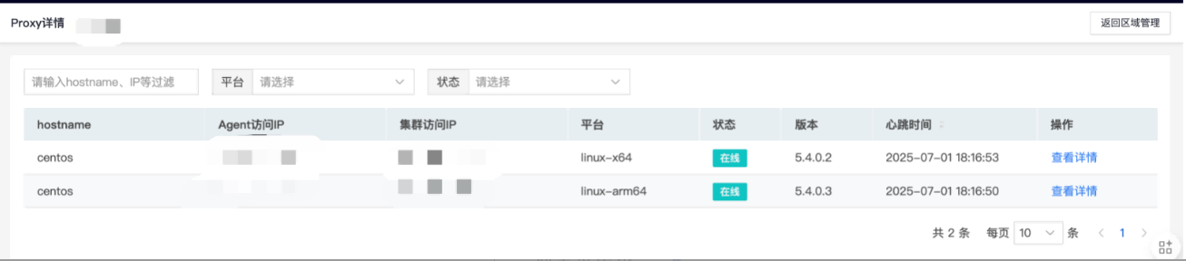 - 通过Proxy区域管理页面,以地理或逻辑区域为维度,对Proxy进行归属关联与分组管理。