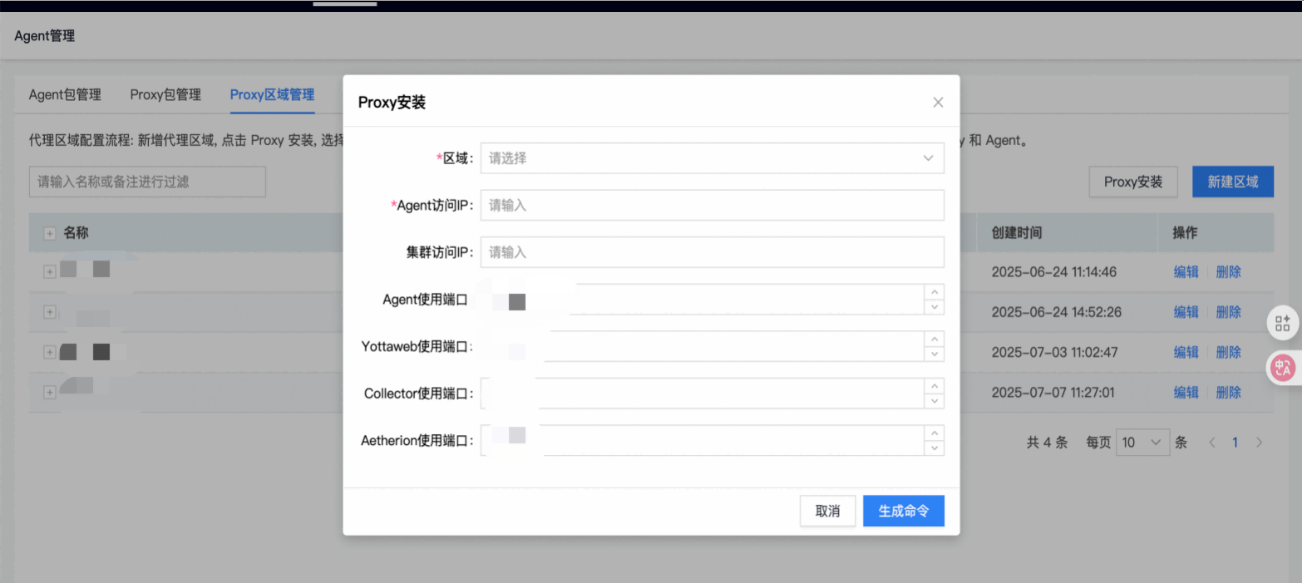 - 一键生成跨区域Agent安装命令,通过获取所在区域内所有在线Proxy节点的信息生成Agent安装命令。